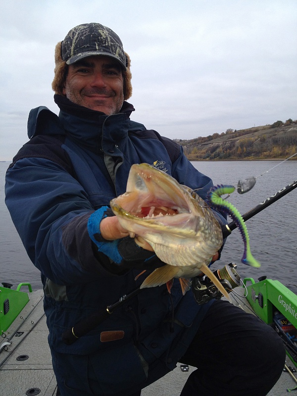 Считая это неплохим результатом, только вечером на базе мы узнали, что все кому не лень день назад просто «пороли» до устали в руках эту «совхознонемецкую» щуку, стоя в футболках и наслаждаясь саратовским бабьим летом и штилем. Такого резкого перепада в погоде никто не ждал. Вода остывала прямо на глазах, теряя каждый день по градусу. Естественно, это сказалось на активности рыбы. Планомерно прочесав все прилегающие проточки, остров и коряжники, мы получили в актив три точки с постоянно клюющей рыбой.